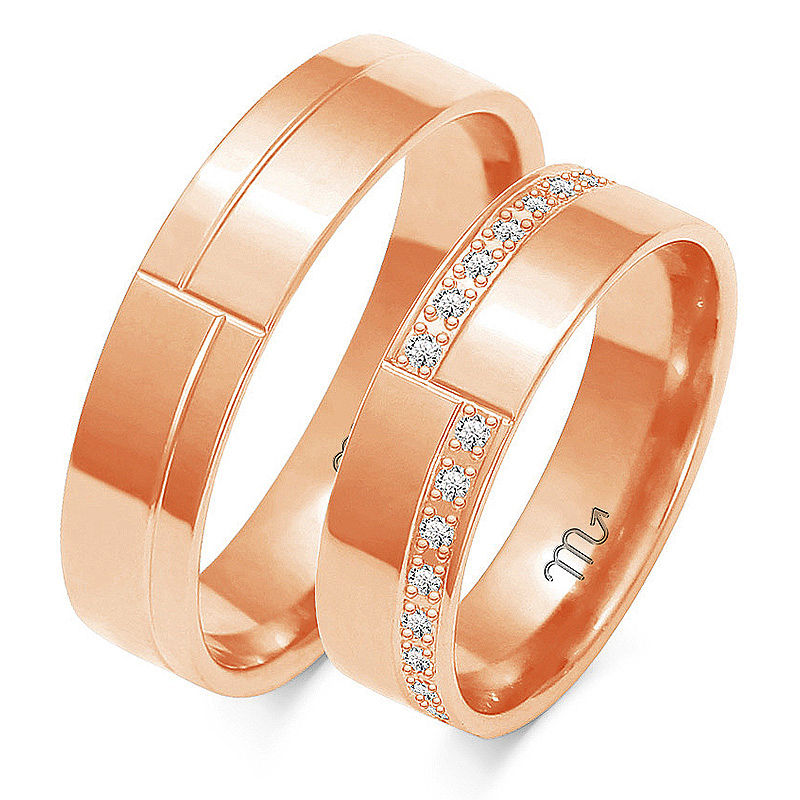 Charakteryzują się prostokątnym lub kwadratowym przekrojem, z płaskimi, prostymi krawędziami. Takie obrączki ślubne wyglądają nowocześnie i minimalistycznie, a ich geometryczna forma nadaje całości solidności. Dzięki płaskiej powierzchni z obu stron są odporne na zarysowania i wygodne w użytkowaniu. Modele amerykańskie mogą być szerokie lub cienkie, często wzbogacone o kamienie szlachetne – pojedyncze lub w formie drobnej linii.