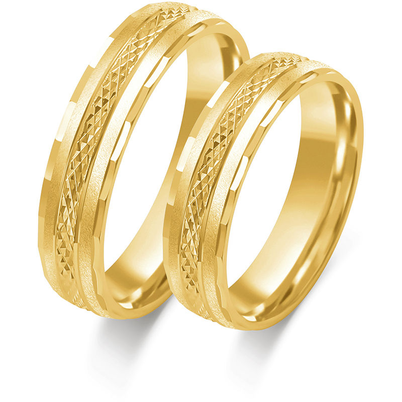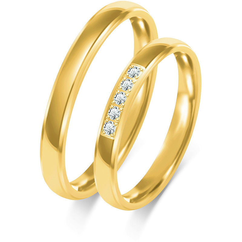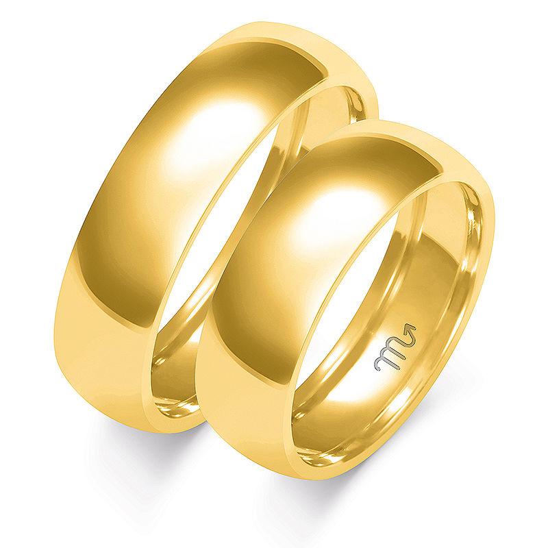 Це найбільш традиційна форма, яку цінують багато пар. Вони мають округлу, напівкруглу зовнішню частину та пласку внутрішню. Завдяки такому профілю обручка чудово лежить на пальці, не спричиняючи тиску чи натирання. Стандартно виготовляються у глянцевому варіанті без додаткових оздоблень, хоча дедалі частіше з’являються й моделі з маленьким діамантом у центрі.